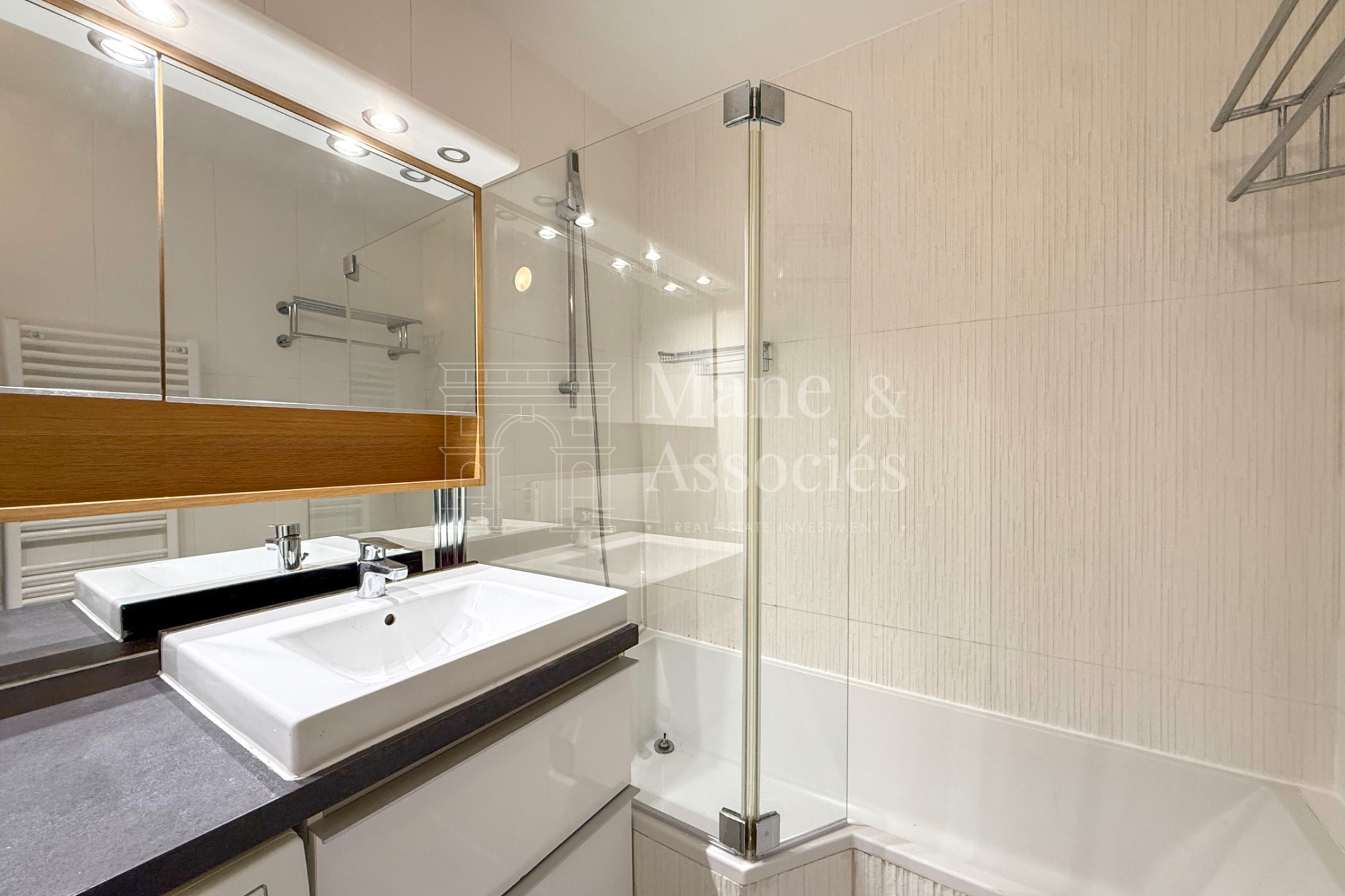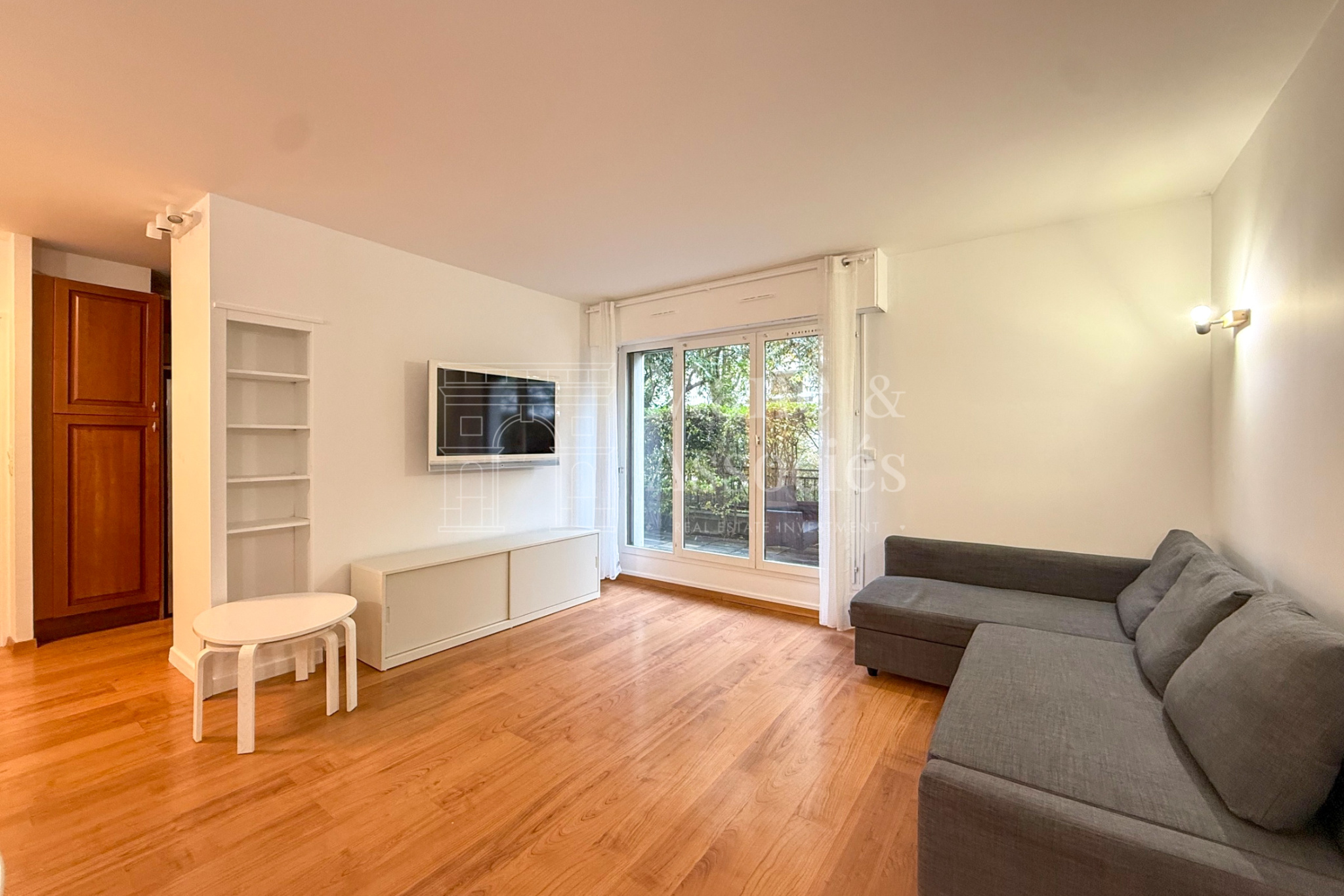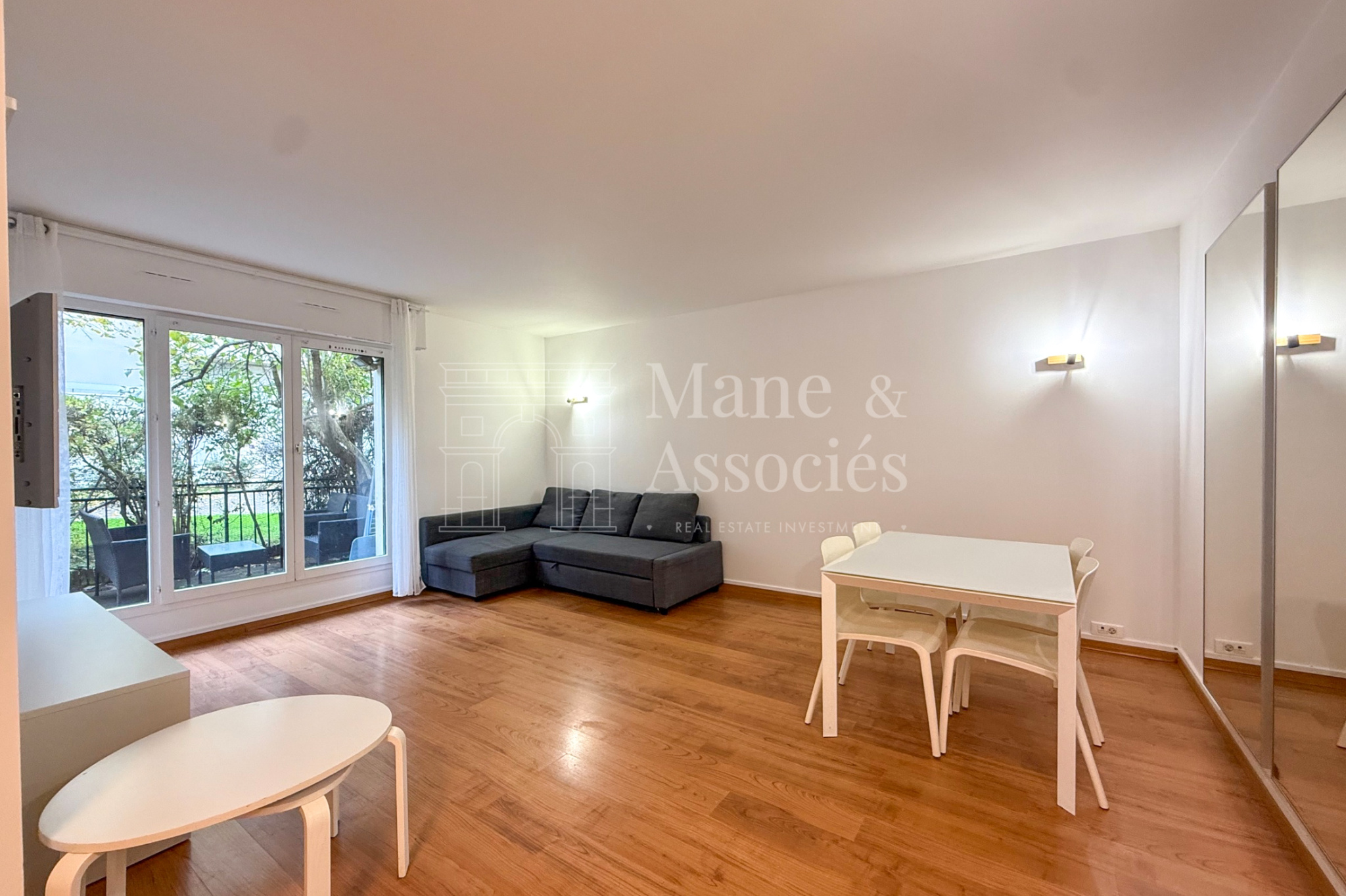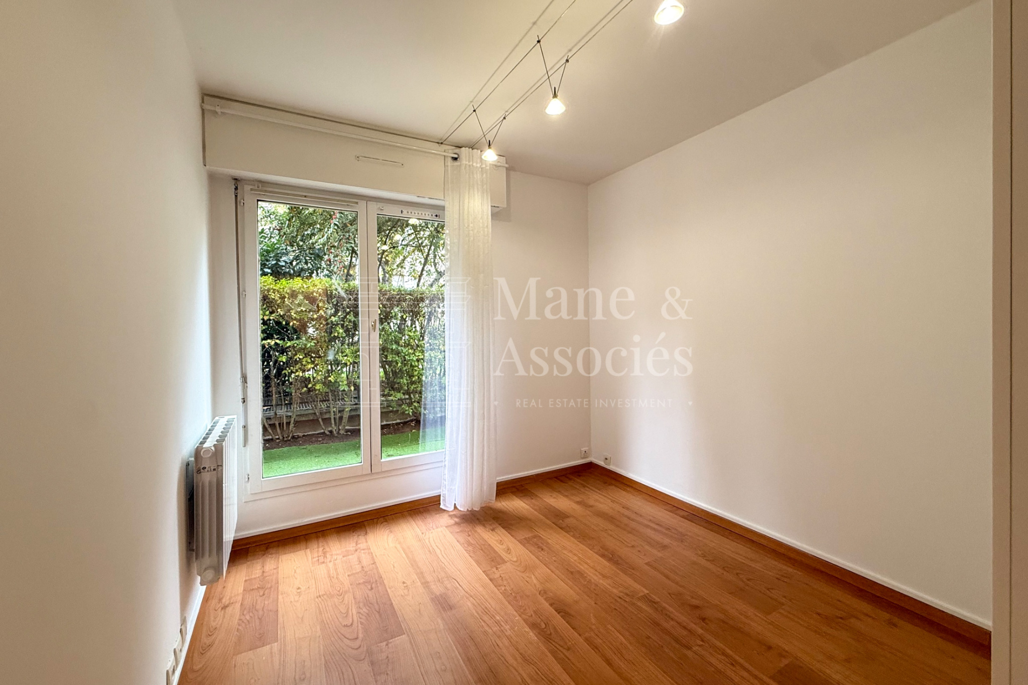 Vous profiterez également d’une salle de bain moderne, de nombreux rangements et d’un atout rare en ville : un jardin privatif.