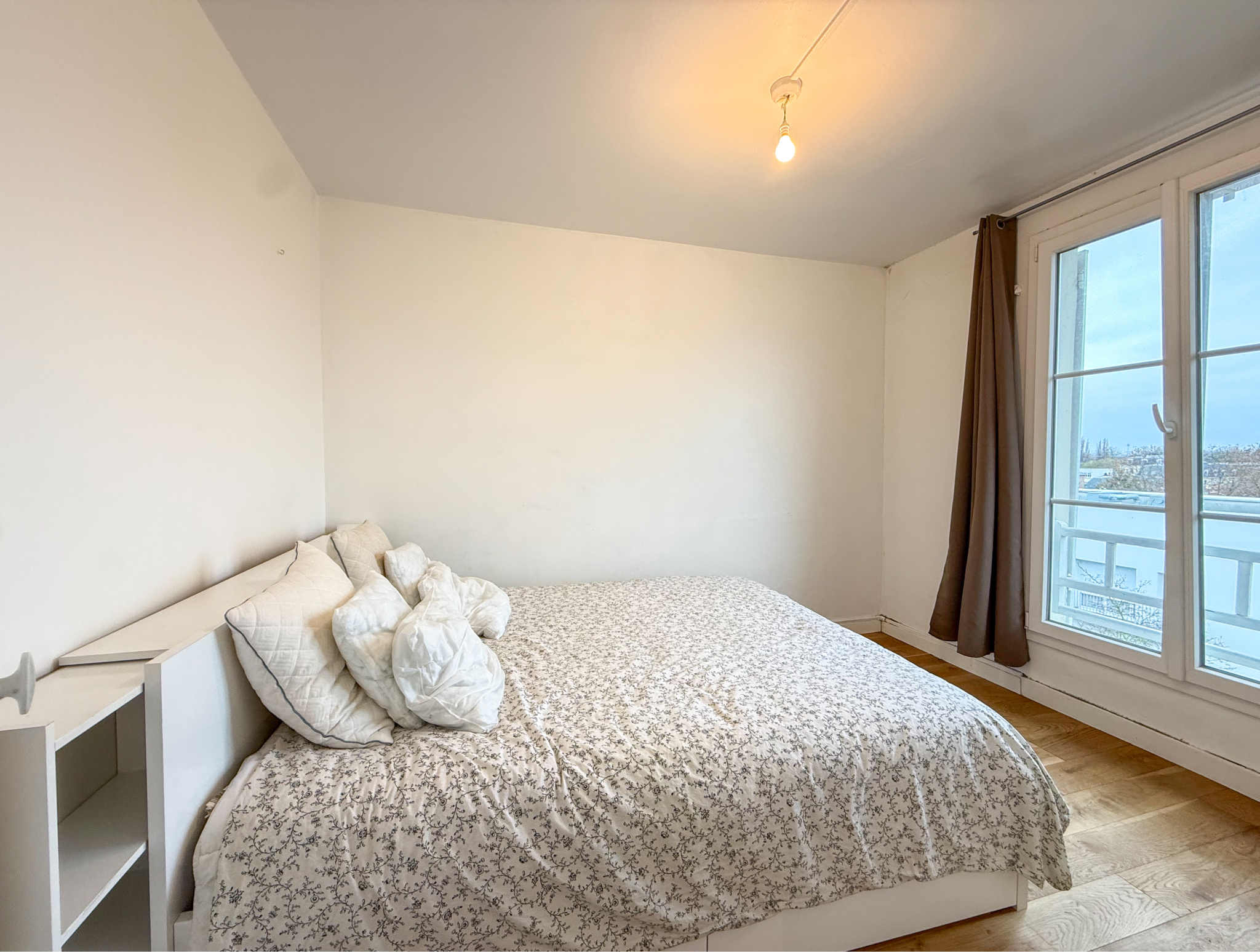 La cuisine, séparée du séjour, est fonctionnelle et prête à être aménagée selon vos besoins. L’appartement dispose également d’une salle d’eau moderne et d’une chambre confortable, exposée au nord, profitant elle aussi d’une vue dégagée et d’un environnement calme.