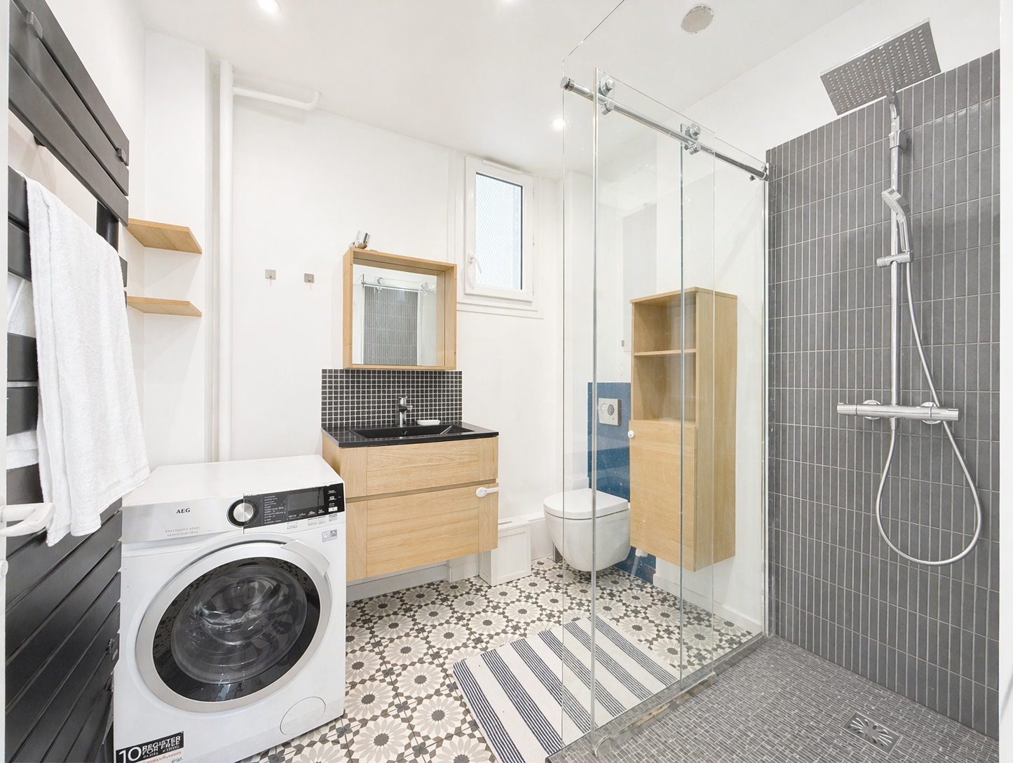 Il se compose d’un séjour lumineux avec cuisine semi-ouverte, d’une belle chambre principale, d’une seconde chambre ou bureau, ainsi que d’une salle de bain avec douche. Le confort est assuré par un chauffage au sol collectif.