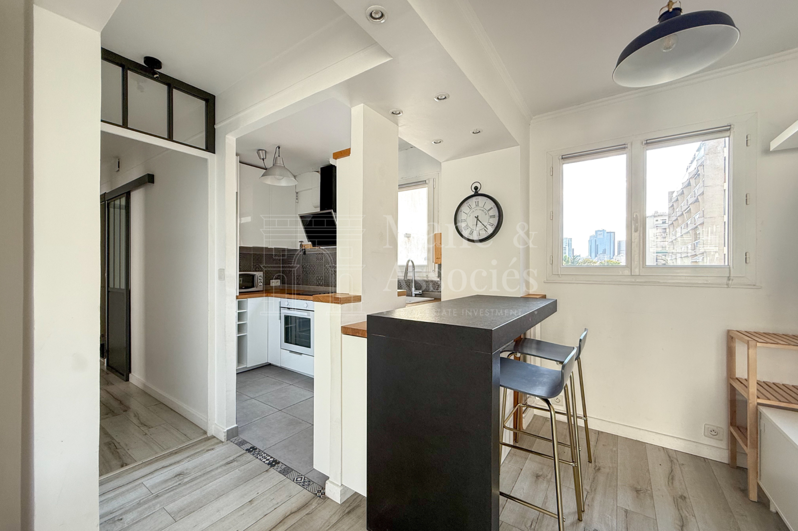 Il se compose d’une entrée, d’un séjour lumineux avec cuisine américaine entièrement équipée, de deux chambres, d’une salle de bains, d’un dressing et de WC séparés.
